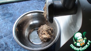 • Сняв с огня, сразу же пропускаем на мясорубку.