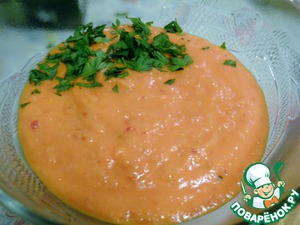 В пюре из перца добавляем парику и мелко нарезанную зелень.