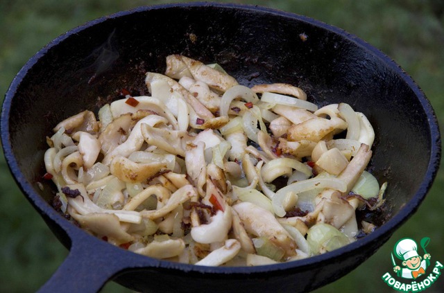 думаю, за неимением таких грибов шампиньоны тоже неплохо с кальмарами будут смотреться) а так за рецепт +++