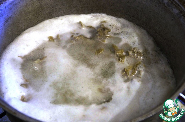 Коралловый гриб варить 5-7 мин., постоянно снимая пенку шумовкой.