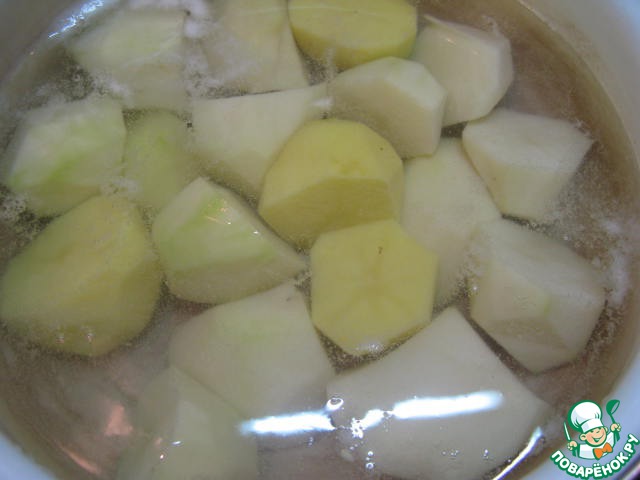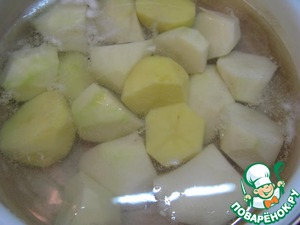 Картофель почистить, порезать, отварить.