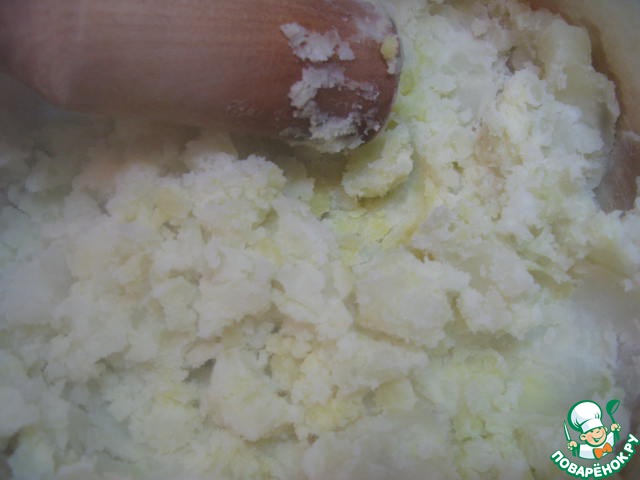 Картофель размять толкушкой (ни в коем случае не миксером).