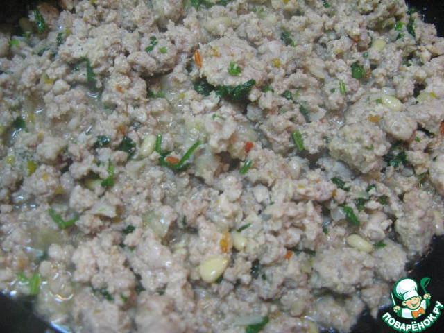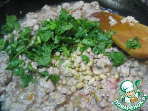 Добавить орехи и мелко порезанную кинзу, кардамон.