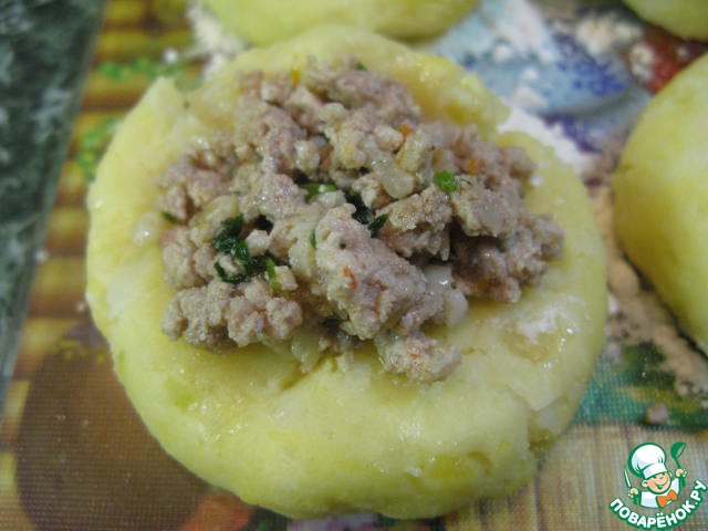 Рецепт «Картофельные пирожки с мясом и орешками»: