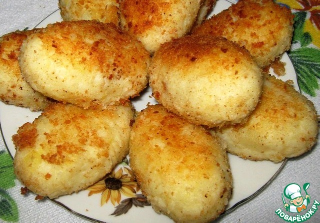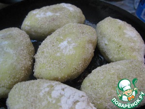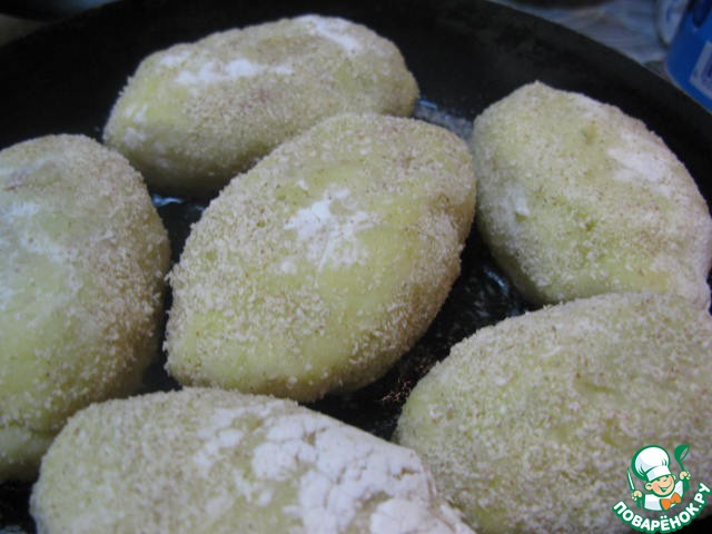 Обвалять пирожки в сухарях и обжарить до образования золотистой корочки с двух сторон.