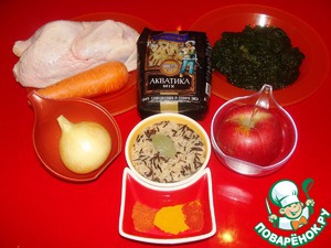 Добавить в кипящий куриный бульон рис, отварить до готовности, затем положить яблоко, нарезанное кусочками, держать на огне еще 10 минут. -