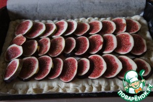 Смазать поверхность оставшимся яйцом. Выложить ломтики инжира внахлест, посыпать листиками тимьяна (у меня тимьяна не было, обошлась без него).