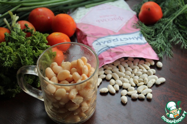 Отдельно отварить фасоль (предварительно замочить её на ночь в воде). Я использую белую фасоль, но подойдёт и красная.
