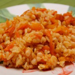Рис, желательно, использовать "Жасмин", я отмеряю 100 г. стаканчиком, из такого количества получится две полноценные порции готового блюда.