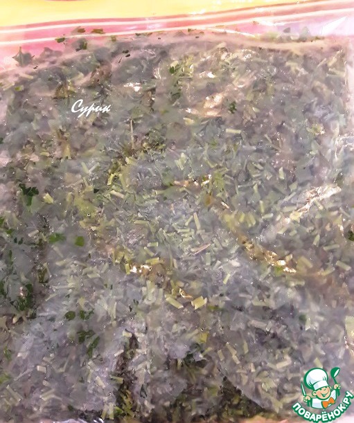 Надеюсь, что результат Вам понравится. Для меня грубые стебли петрушки и укропа лишние, в готовом блюде выглядят непривлекательно, всегда их обрезала, а замораживать с ними, тем более - непозволительная роскошь... сколько места займут в морозилке.