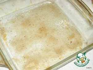 Форму для запекания смазать маслом и присыпать панировочными сухарями или манкой.