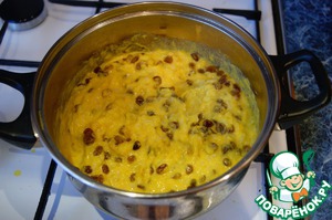 Затем добавить промытый изюм, сливочное масло, хорошо перемешать и оставить остывать.