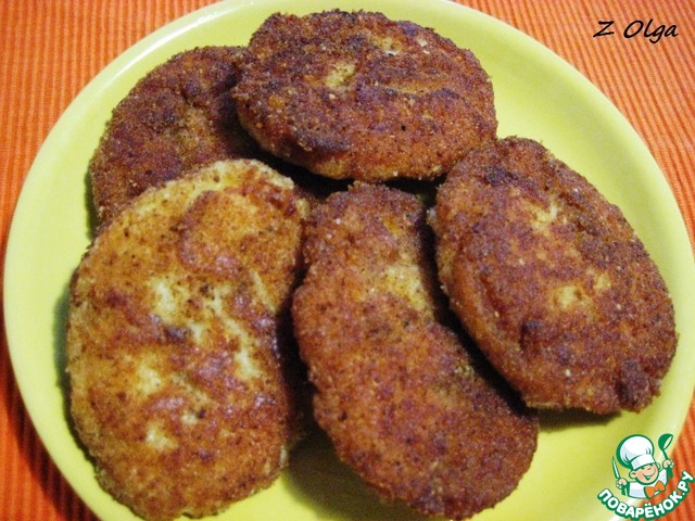 Обваливаем наши котлетки в сухарях и обжариваем со всех сторон до румяной корочки.