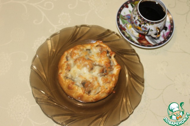 Почему такое название? Предвидя такой вопрос, отвечаю словами моей френдессы Елены Элайзик из ЖЖ. "Жульен - слово французское, этим словом принято называть способ нарезки овощей соломкой. Из овощей, нарезанных таким образом, варят суп. А вот блюдо "жульен из грибов" - это уже русское изобретение. Легендарный жульен с грибами заказывали к дрожжевым блинам в буфете Кремлёвского Дворца съездов, а потом долго и с придыханием рассказывали об этом всем друзьям. Жульен из грибов - изысканная горячая закуска, а с добавлением курицы - полноценное и сытное блюда для обеда или ужина." Готовлю это блюдо очень давно, но вот в этот раз решила пофантазировать и поместила жульен в галету - во истину чудо французской кухни!!! Тонкое, хрустящее, просто тающее во тру тесто и много сочной и ароматной начинки! ммммм... Как же это вкусно!!! Что долго говорить! Лучше приготовить и побаловать своих дорогих и любимых! Очень рекомендую.