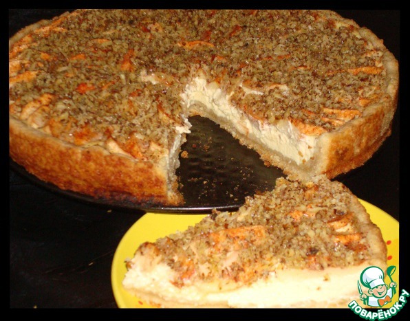 Так приятно за завтраком хоть на мгновение перенестись в солнечную Италию!!! Этот пирог со сливочно-творожной начинкой в сочетании с яблоком и небольшой песочной прослойкой - просто блаженство, в дополнении ароматов ванили, корицы и орешков перенесёт Вас именно туда!