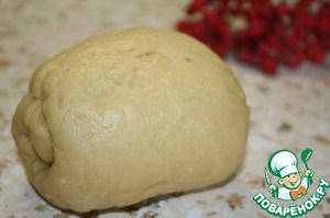 Замесить эластичное тесто. Дать тесту "отдохнуть" под пленкой, затем еще раз хорошо вымесить. Тесто получается тугое, но эластичное, не липнет к рукам.