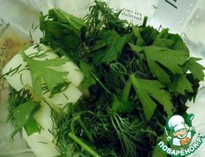 Петрушку тоже крупно порубить и сложить вместе с луком в блендер, добавить все продукты по рецепту.