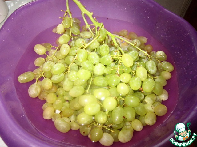 Гроздья винограда надо промыть проточной водой и положить его в миску с холодной водой.