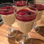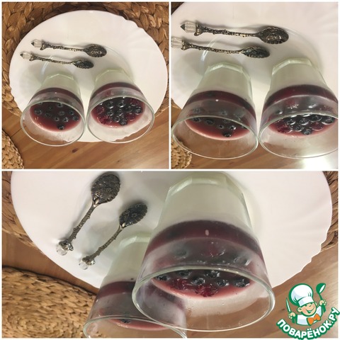 Паннакотта из сливок и молока Parmalat с ягодным желе из сока Santal Лесные ягоды.