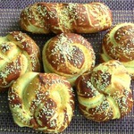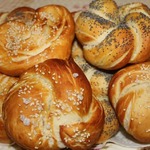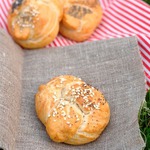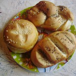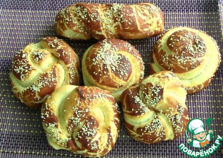 Булочки присыпать кунжутом, маком, семечками и выпекать в духовке разогретой до 160 градусов около 25-35 минут.