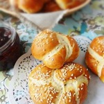 Покупала в булочной такие кренделя, посыпаные очень крупной морской солью. Этот рецепт мне нравится больше.