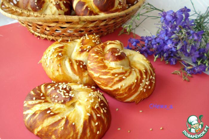 Очень вкусные булочки с хрустящей корочкой и нежным мякишем. Рецепт, автором которого является elenawait, был взят мною из кулинарного журнала. Спасибо ей большое!