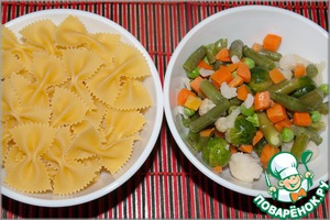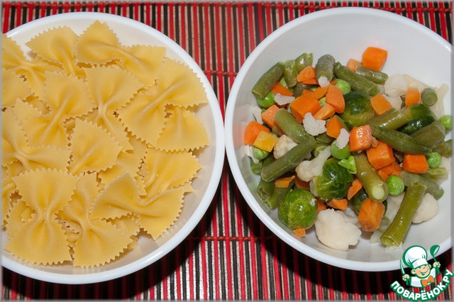 - Овощи (замороженная овощная смесь - морковь, стручковая фасоль, зеленый горошек)