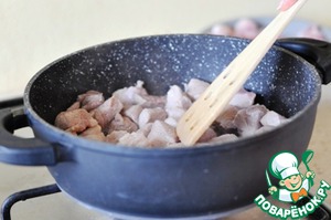 - Свинина (мякоть, нарезанная кубиками) — 1 кг