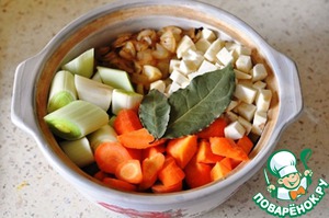 - Лук-порей (нарезанный 3 см кусочками ) — 2 шт