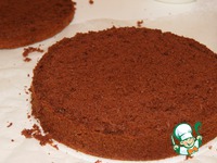 Разрезать бисквит по горизонтали на 3 коржа. |