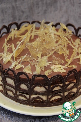 молочным шоколадом. Накрыть третьим коржом слегка придавить. |