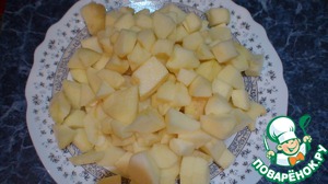 • Яблоки очистить и нарезать кубиками среднего размера, сбрызнуть соком 1/2 части лимона.