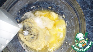 • Во взбитое масло по одному вводим яйца, не переставая взбивать.