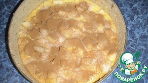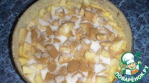 • На тесто выложить 1/2 часть яблок, присыпать сахаром (50 г.) и корицей.