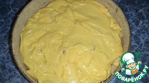 • На яблоки выложить вторую часть теста и равномерно распределить.