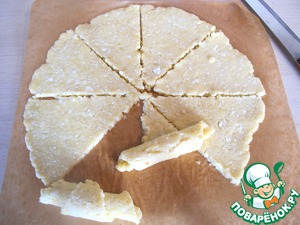 После чего раскатайте, разрежьте на сектора и скрутите в виде рогаликов.