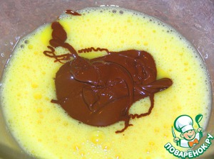 Желтки взбить венчиком. Небольшими порциями добавлять расплавленный шоколад, тщательно размешивая до однородной массы.