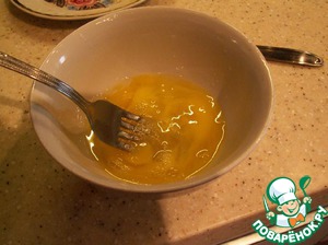 Скинуть лавровый лист. Отдельно в чашке разбить сырое яйцо и взбить его вилкой.