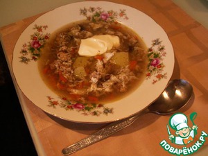 За три минуты до готовности медленно влить взбитое яйцо влить в бульон. Поперчить.
