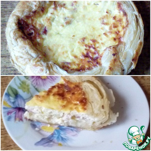Быстрый луковый пирог из слоеного недрожжевого теста.