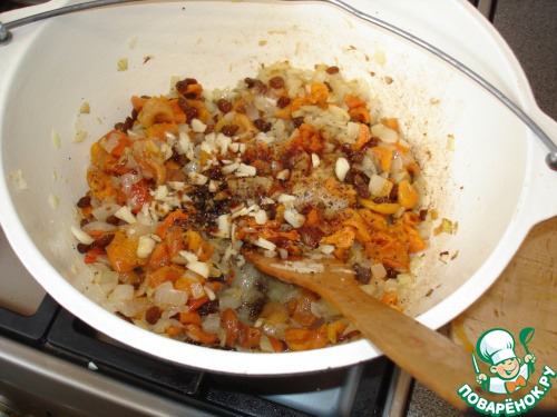 добавляете к нему нарезанный урюк, изюм, гранатовый или лимонный сок, а так же все специи.