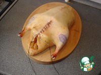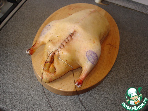 Подготовить утку, опалить, удалить пух и перья и натереть внутри умеренно солью.