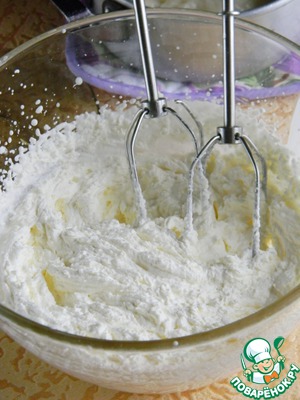 Взбить до получения светло-жёлтой, почти белой массы.