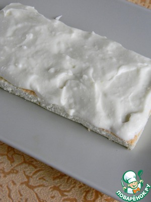 Бисквит разрезать на три прямоугольника.
