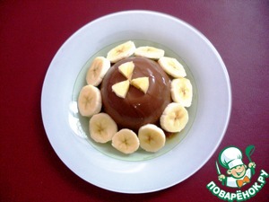 Застывший десерт отделяем от формы путем опускания на несколько секунд в кипяток, потом быстро переворачиваем на тарелочку.