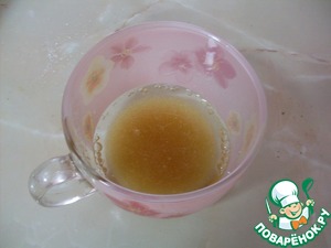 Желатин заливаем небольшим количеством воды. Оставляем набухать на 15 мин.