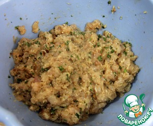 В глубокую миску кладем нарезанные куриные грудки, яйцо, сыр, соль, перец и петрушку. Хлеб смачиваем в молоке, хорошо отжимаем и добавляем к нашей смеси. Руками хорошо все перемешиваем.