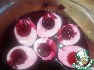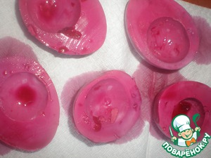 Белки вынуть из свекольной воды, обсушить и выложить на сервировочное блюдо.