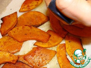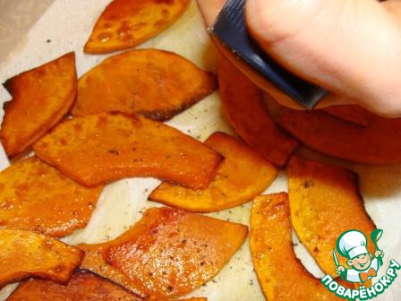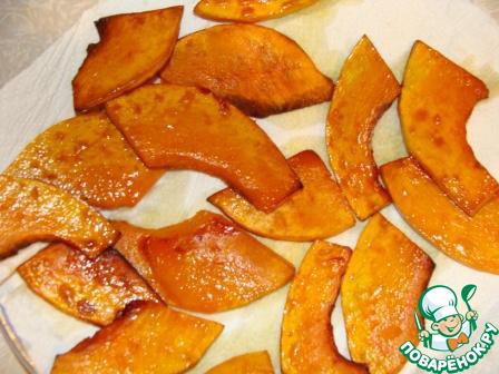 Тыкву вынуть, положить на бумажное полотенце, чтобы удалить излишки масла,