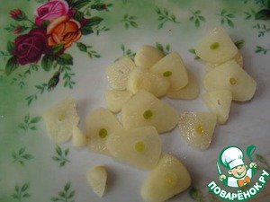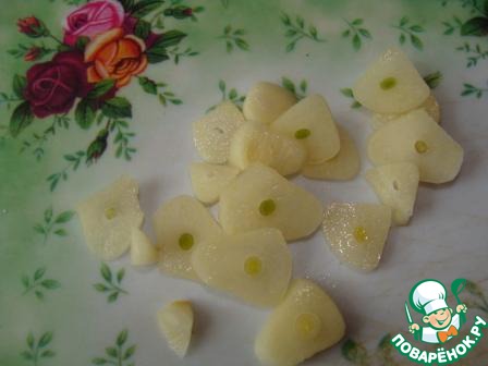 Для томатного соуса чеснок очистить, нарезать пластинками,